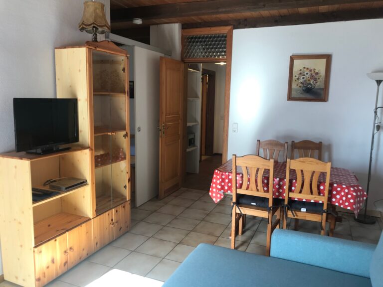 Die große Terrasse bietet zusätzlichen Raum im Freien und lädt dazu ein, die ruhige Umgebung zu genießen. Die Wohnung ist für bis zu fünf Personen belegbar.